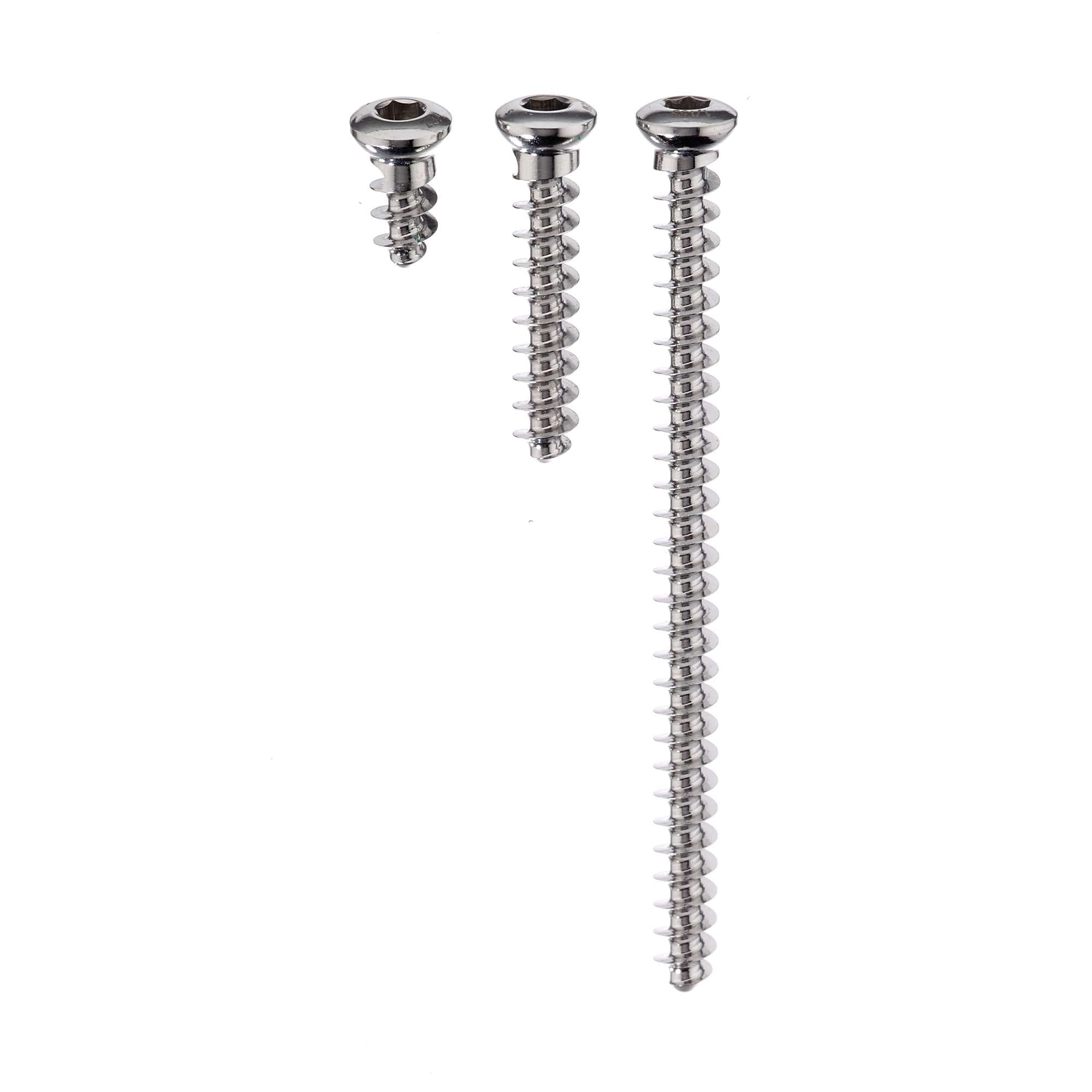 The fully threaded cancellous screws have a relatively thin core and a wide and deep thread. Ideally used for fastening plates in metaphyseal and epiphyseal areas of bone.