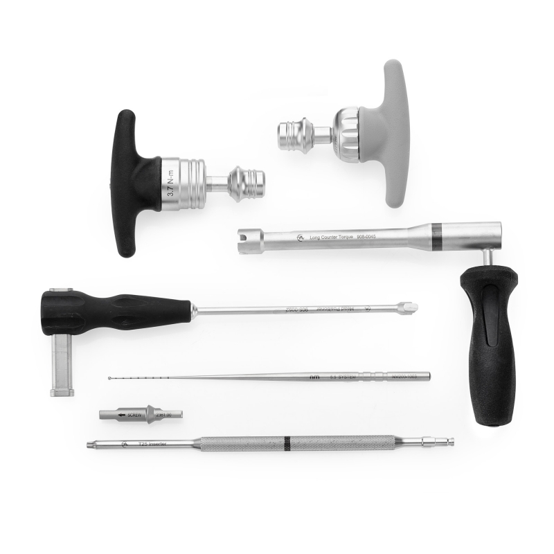 Complete Kit containing Instruments and Implants for 5.5mm rod system (3.5mm and 4.5mm large tulip)