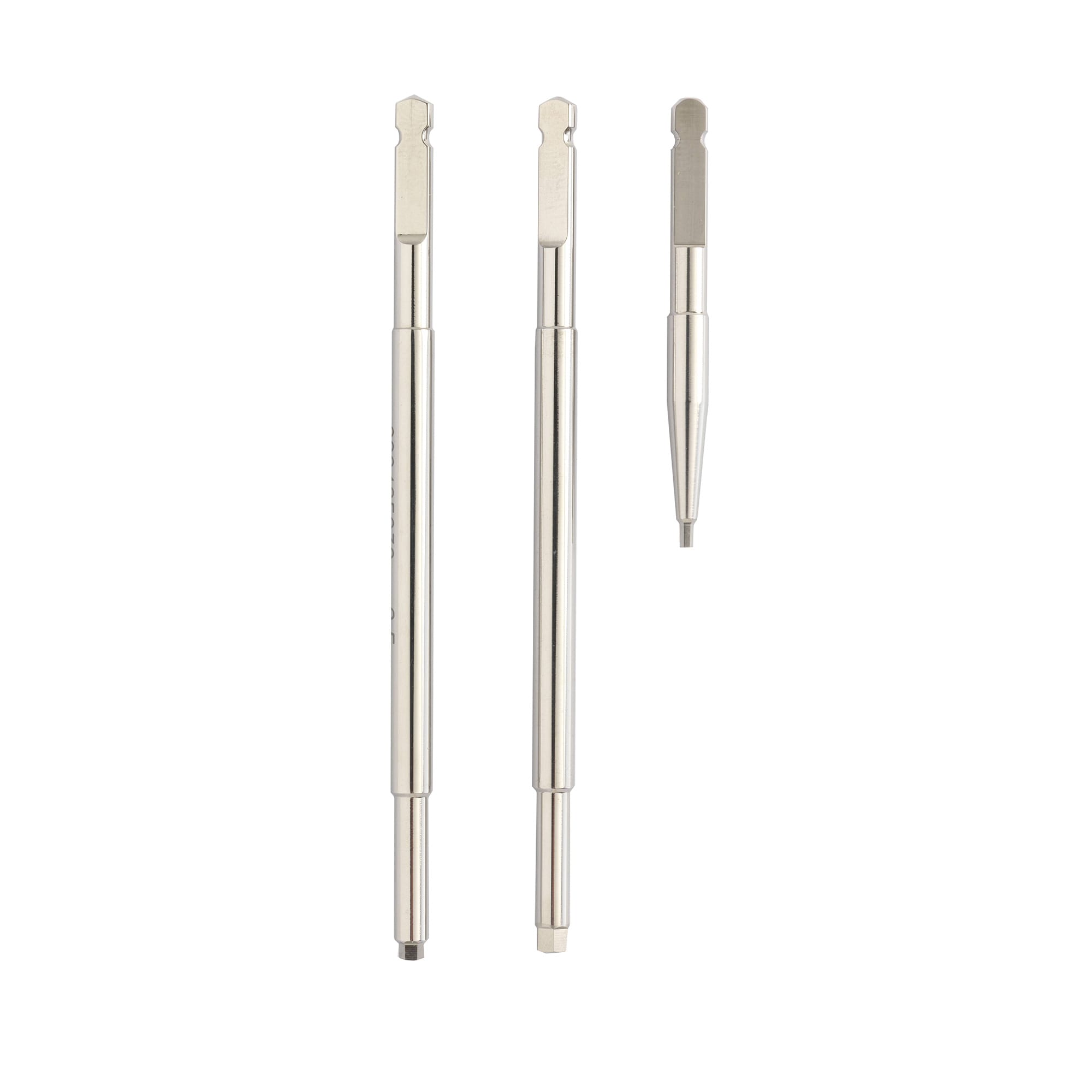 Quick coupling shafts, to be used in conjuction with our quick coupling handles, are available in three sizes to accommodate screws from 1.5mm to 6.5mm