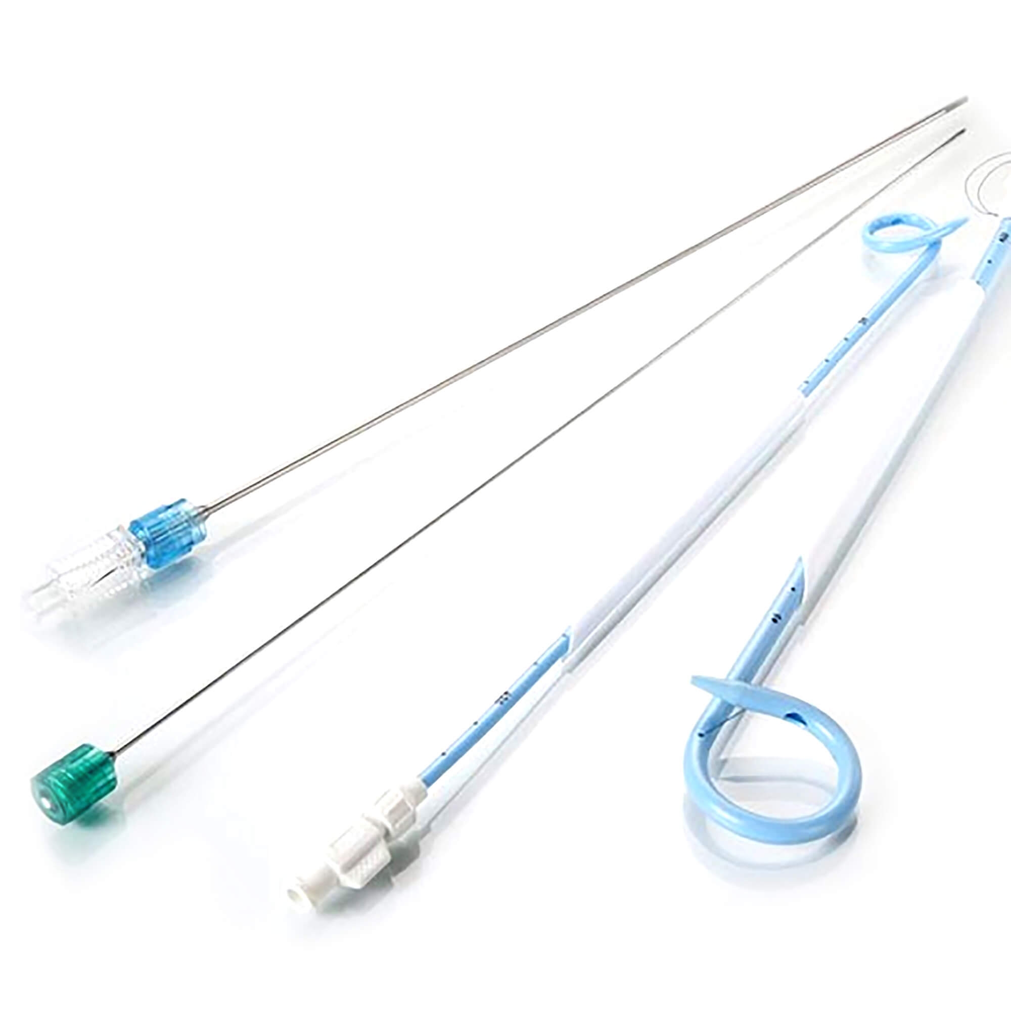 Our drainage catheters are made of biocompatible and radiopaque medical grade polymers. They have high tensile elasticity and strength, which allows for secure and long-term usage. Combination of gradually tapered catheter tip and inner stylet provides optimal and atraumatic insertion and placement. Its pigtail configuration minimizes catheter tip migration. The surface markings aid in determination of depth of insertion following catheter placement. Each sterile drainage catheter kit comes with a drainage catheter, puncture needle set and removable straightener. Please see Sizes tab for available sizes.